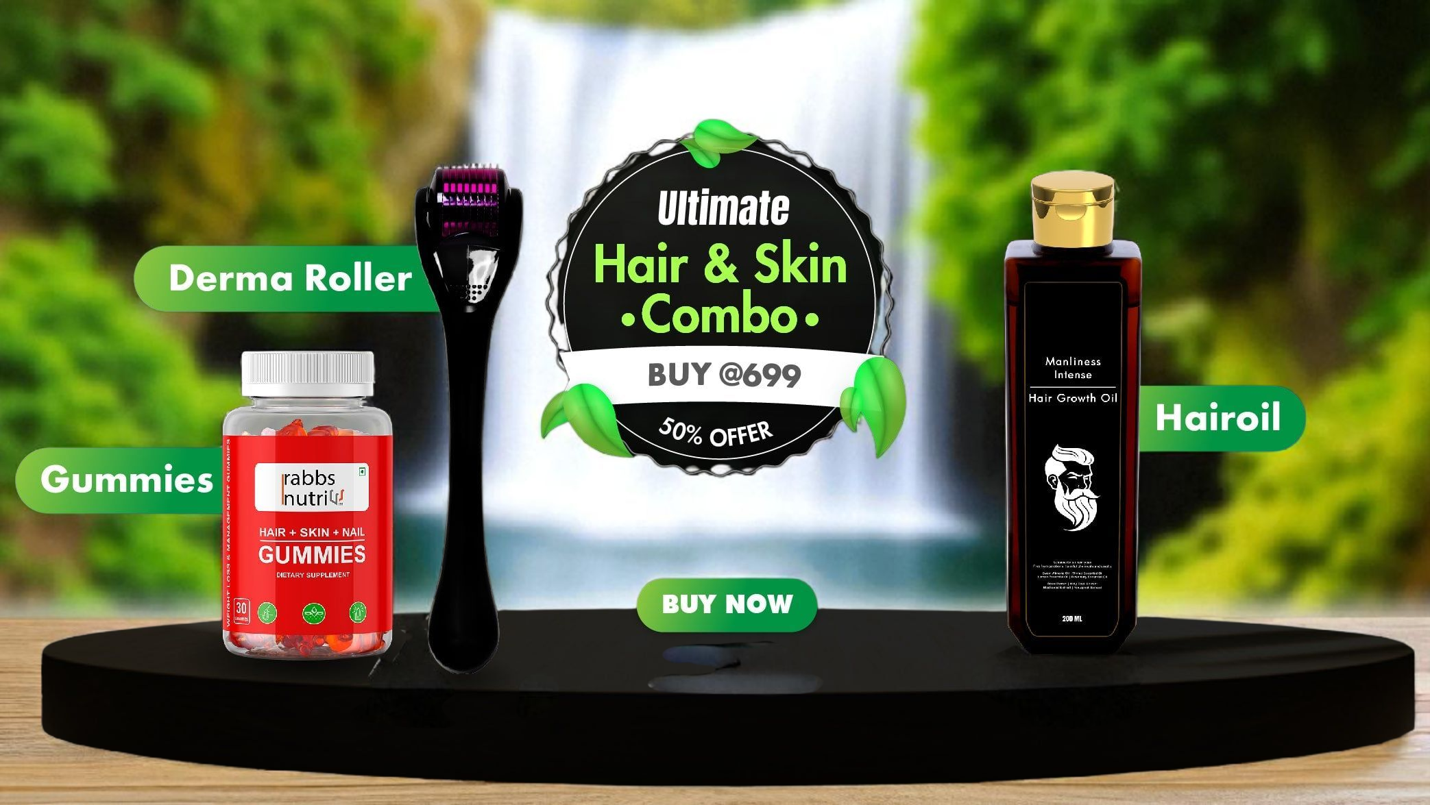 1. MANLINESS HAIR OIL 200 ML + DERMAROLLER .55MM